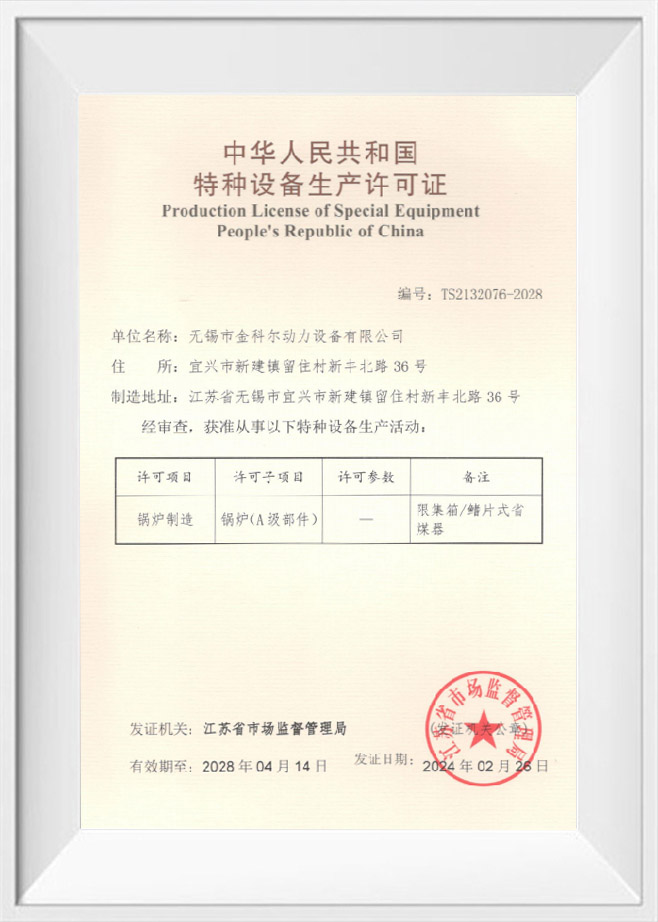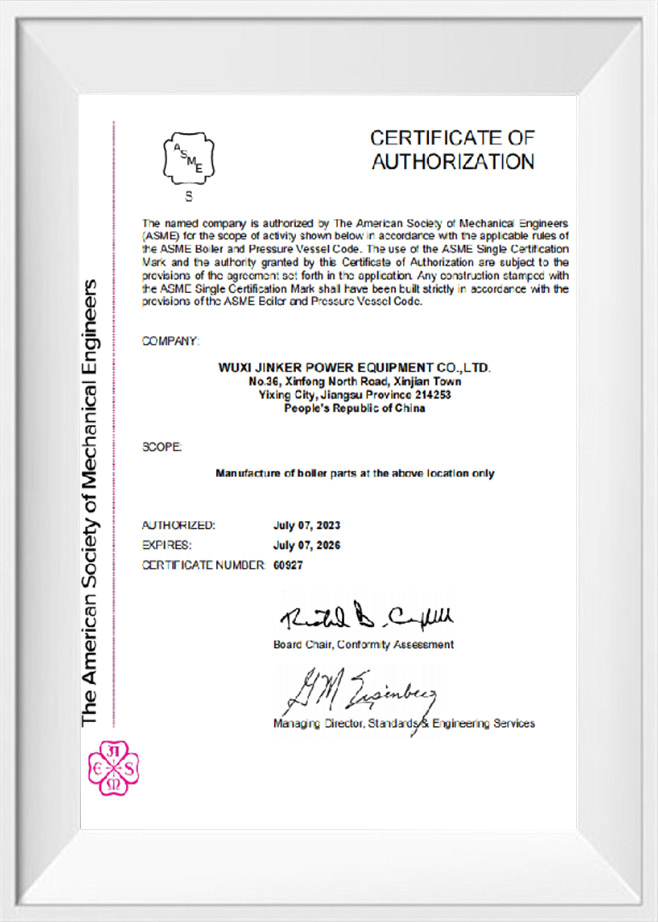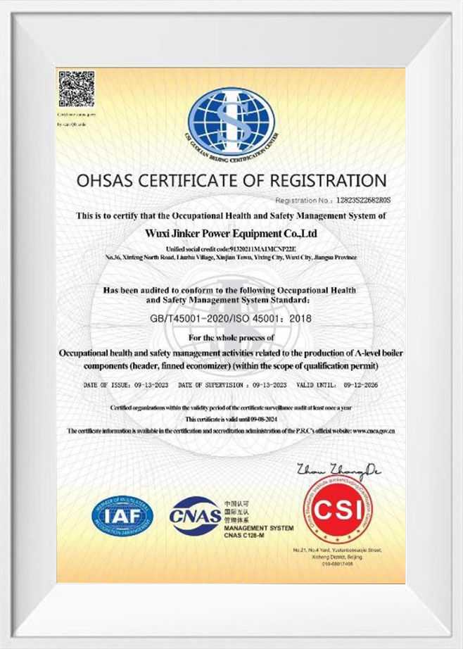 เราเป็นองค์กรที่มีใบอนุญาตการผลิตชิ้นส่วนหม้อไอน้ำระดับ A (ส่วนหัว เครื่องประหยัดเชื้อเพลิง) ซึ่งเป็นองค์กรที่มีคุณสมบัติ ASME-S, ISO9001、ISO14001、ISO45001、ISO 3834-2.
